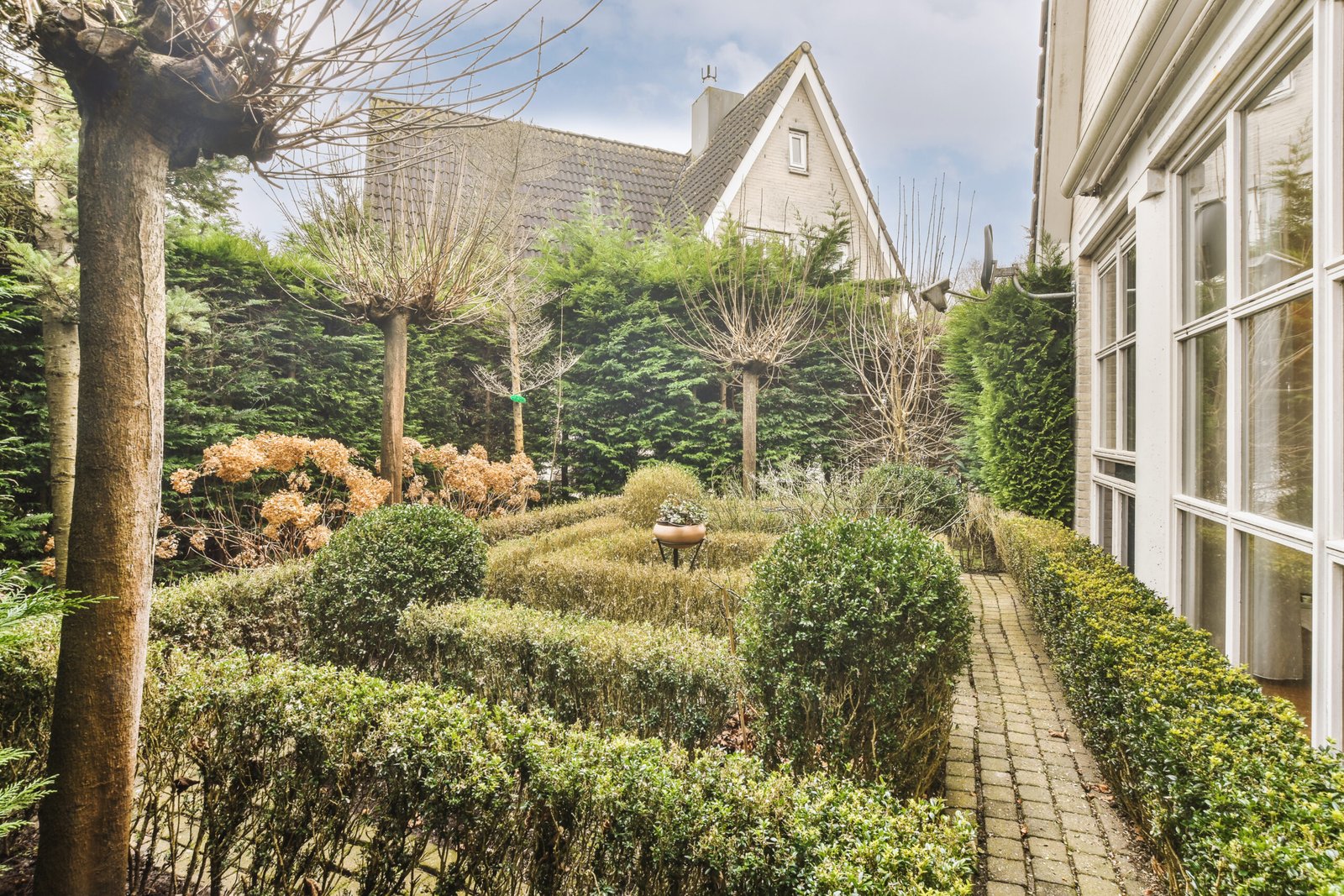 Man working in garden on sunny dayan-english-back-garden-full-of-plants-2026-01-09-13-10-42-utc